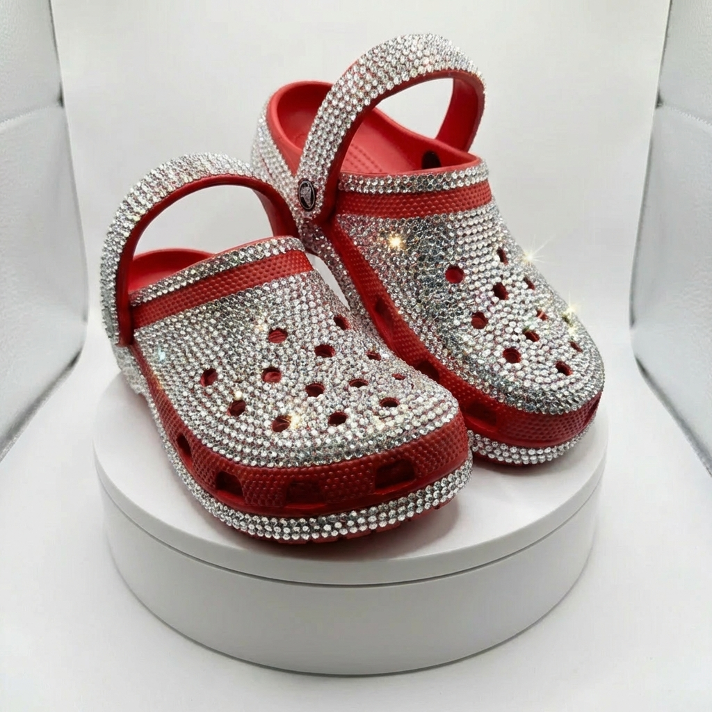 Each pair is hand-embellished with high-quality bling and premium charms, securely fixed to ensure long-lasting wear. The embellishments are water-resistant, scratch-resistant, and firmly attached, designed to stay in place through daily use without fading or loosening.