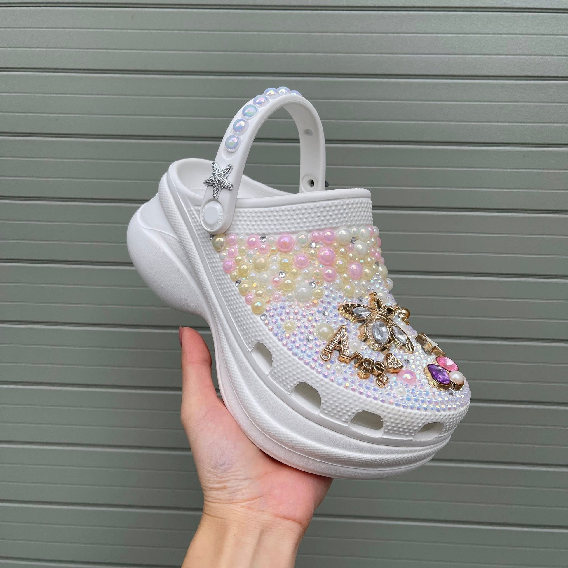Hand-customized clog shoes with crystal stones & decorative charms