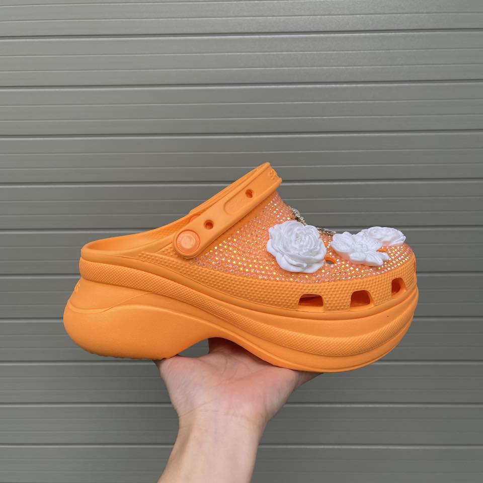 These clogs feature a comfortable clog-style base and are individually hand-customized with sparkling stones and premium charms for an elevated, fashion-forward look.